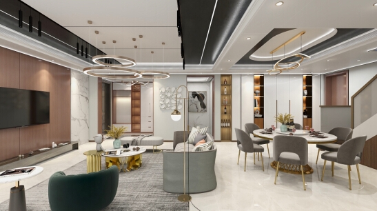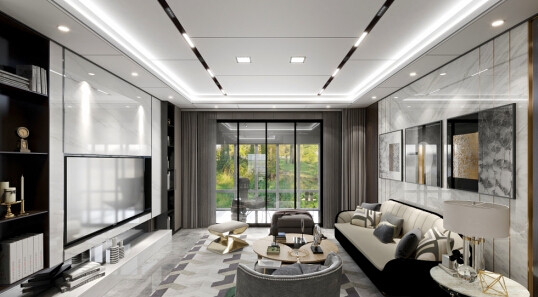 在這個客廳里,頂墻地以黑白灰來配色,定調(diào)整體統(tǒng)一性,在視覺上達(dá)到相對的“一致性”,這樣的空間真的高級感十足。
