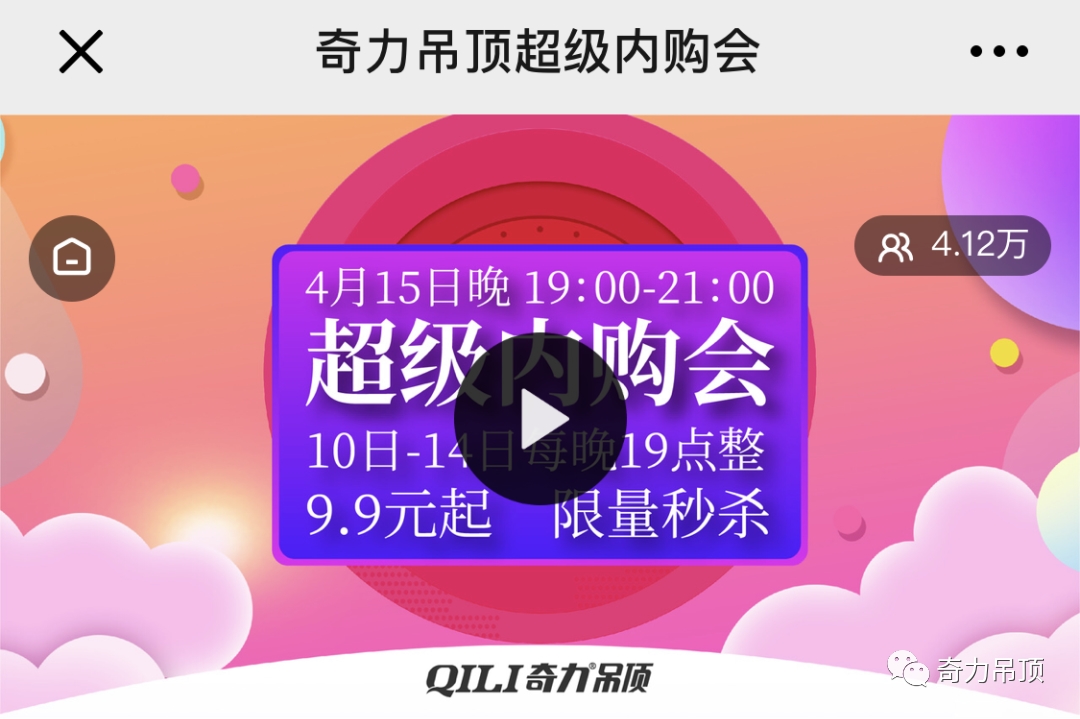 4月15日晚7點(diǎn) 奇力吊頂超級(jí)內(nèi)購會(huì)直播間 更多優(yōu)惠套餐、優(yōu)惠產(chǎn)品等著大家!正在裝修的小伙伴 千萬不要錯(cuò)過哦!
