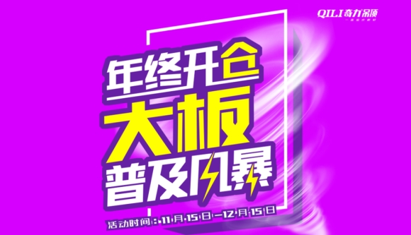 奇力“年終開(kāi)倉(cāng) 大板普及風(fēng)暴”大勢(shì)啟動(dòng)! 活動(dòng)時(shí)間:11.15-12.15 詳情請(qǐng)咨詢(xún)奇力全國(guó)各大專(zhuān)賣(mài)店