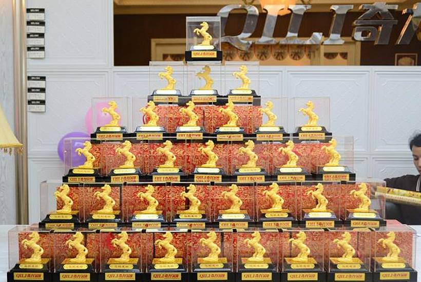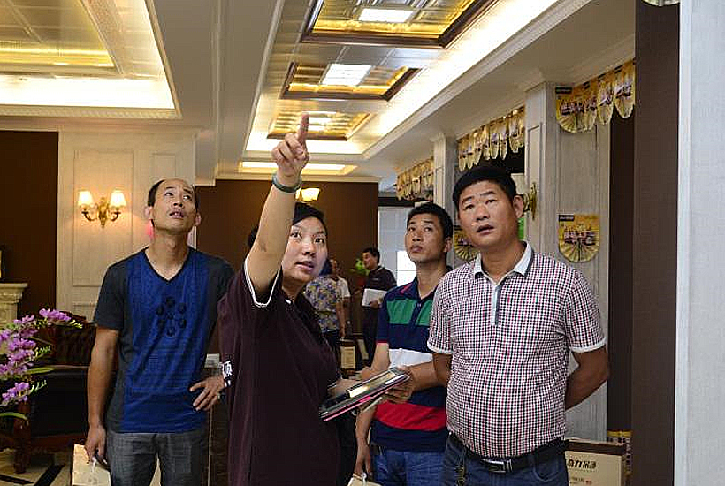 直供專車抵達奇力總部后,業(yè)主們就迫不及待得趕往公司展廳參觀。富麗堂皇的美式風(fēng)尚展廳,高貴奢華、精致典雅。一進展廳,業(yè)主們的所有關(guān)注點便投射到產(chǎn)品上。他們紛紛掏出手機,親手記錄下奇力的精美產(chǎn)品與展廳。