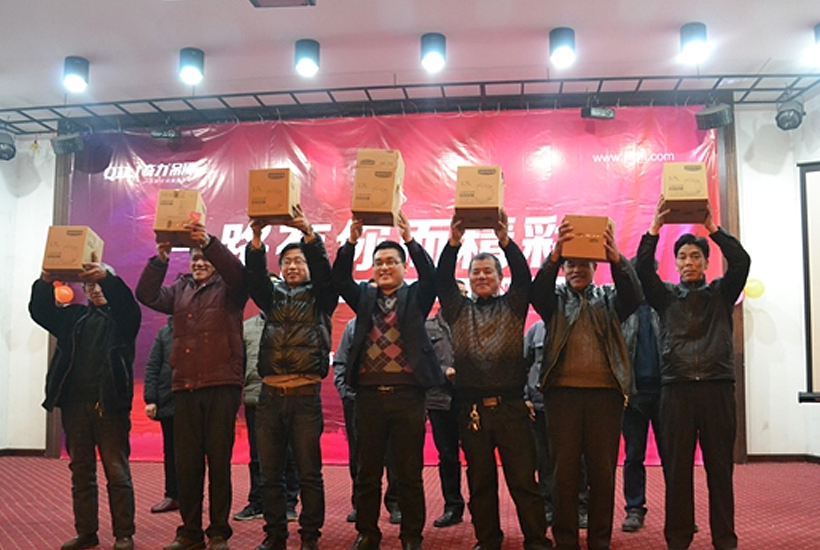 隨著兩位主持人的洪亮嗓音,團(tuán)年晚宴序幕正式拉開。宴會伊始,總經(jīng)理穆國強(qiáng)起身致祝酒詞,穆總真切表達(dá)了對奇力全體員工的15年來的感恩情懷和對2014年大家取得的成績的高度肯定,最重要的是表達(dá)了對員工及家人的新年祝愿。在穆總的真摯祝福下,宴席正式啟動。