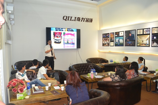 在熱烈的掌聲中,奇力的營銷總監登臺演講,從奇力的6大優勢開始,自產品、設計、售后等與終端門店經營息息相關的各個方面,為經銷商提供保障,無憂經營,輕松成就大商。