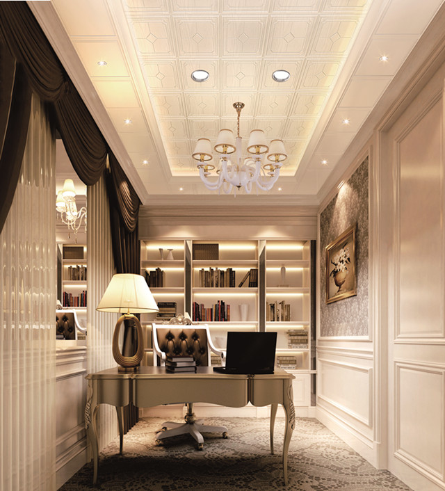 歐式風格的書房,在家具上的選擇一些具有“歐味”的書柜和工作臺,再配以西洋油畫、水彩畫和雕塑等也能增強歐陸風情,如女體像柱、繪畫雕塑、裝飾假面以及圓形或橢圓形雕飾等圖案。在這樣的書房辦公,會不會事半功倍呢?