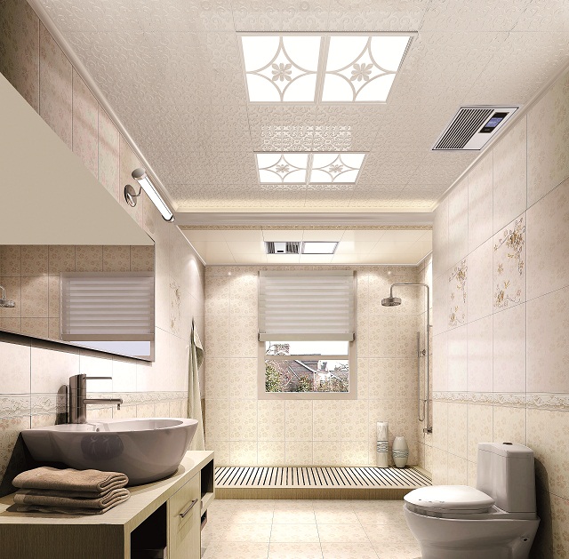 衛浴間的水汽較重,所以,要選擇那些具有防水、防腐、防銹特點的材料做頂棚是很重要的。
