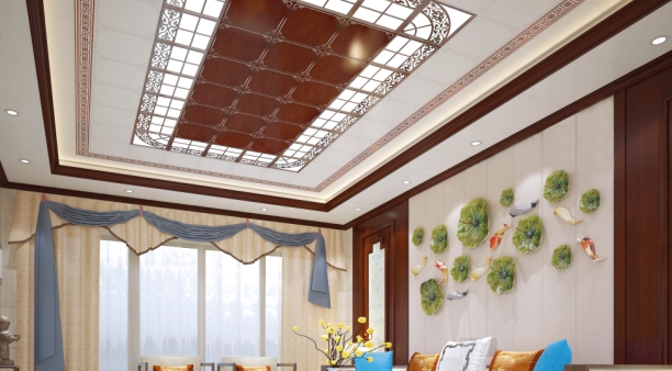 這個客廳是中國傳統風格和現代風的融合,保留了中式風格的精髓,與現代潮流的碰撞創新,加入集成吊頂,演繹另一番美妙。