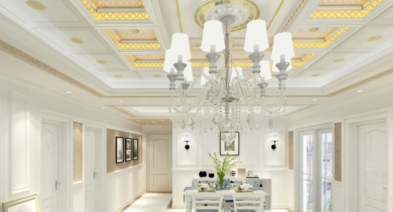 挑高客廳的空間大,如果頂部裝飾少,會顯得很空洞。可以在頂部裝上集成吊頂,來彰顯你的品味。注意在選擇集成吊頂的時候要和家中的整體風格進行匹配。