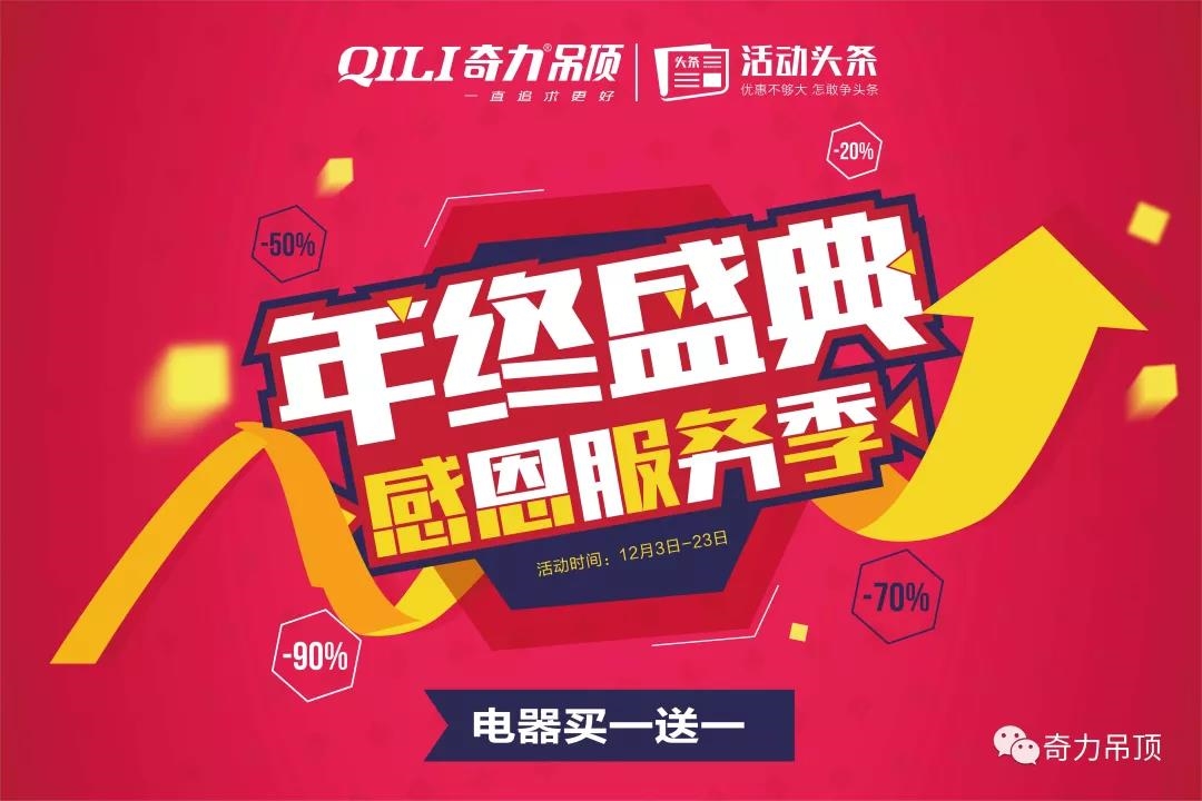 奇力吊頂“年終盛典 感恩服務季” 活動時間:2018.12.3-12.23 詳情請咨詢奇力全國各大專賣店